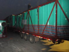 2017年6月22日山西焦化廠王經理定購的兩臺LFD-35覆膜扁布袋除塵器(立式)已發貨,除塵器與控制系統分開發運,現場按操作說明書按裝即可投入正常使用。我公司O設計的連桿傳動部分,傳動合理、準確、可靠、靈活,可有效帶動奇偶扁布袋之間發生異步對拍振動 -